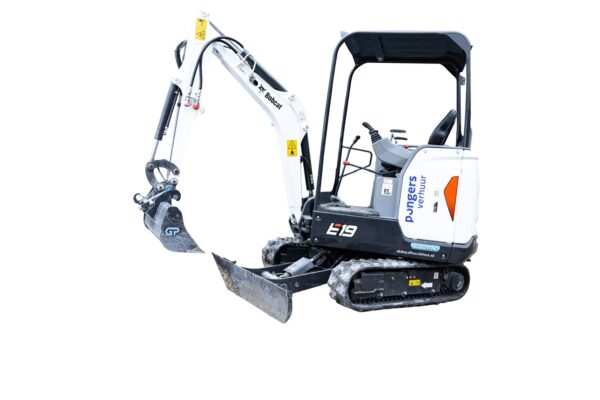 De Bobcat E19 mini-graafmachine kan per dag 8 draaiuren maken met 0% uitstoot.