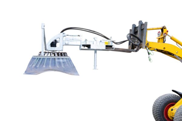 De onkruidborstel bevestig je vooraan de knikmops. Optioneel kan er een scherm bij geleverd worden om het rondvliegen van onkruid tegen te gaan.